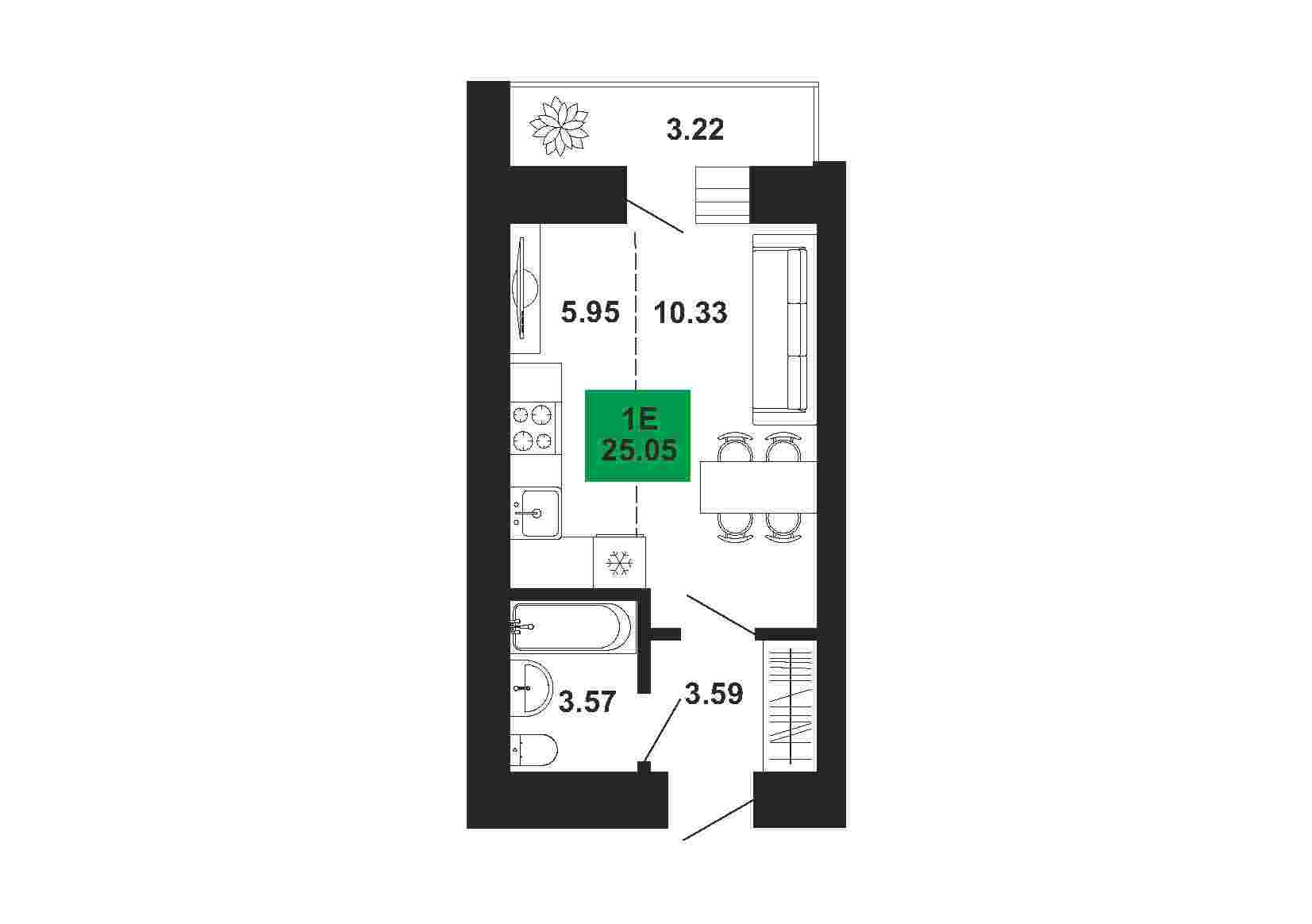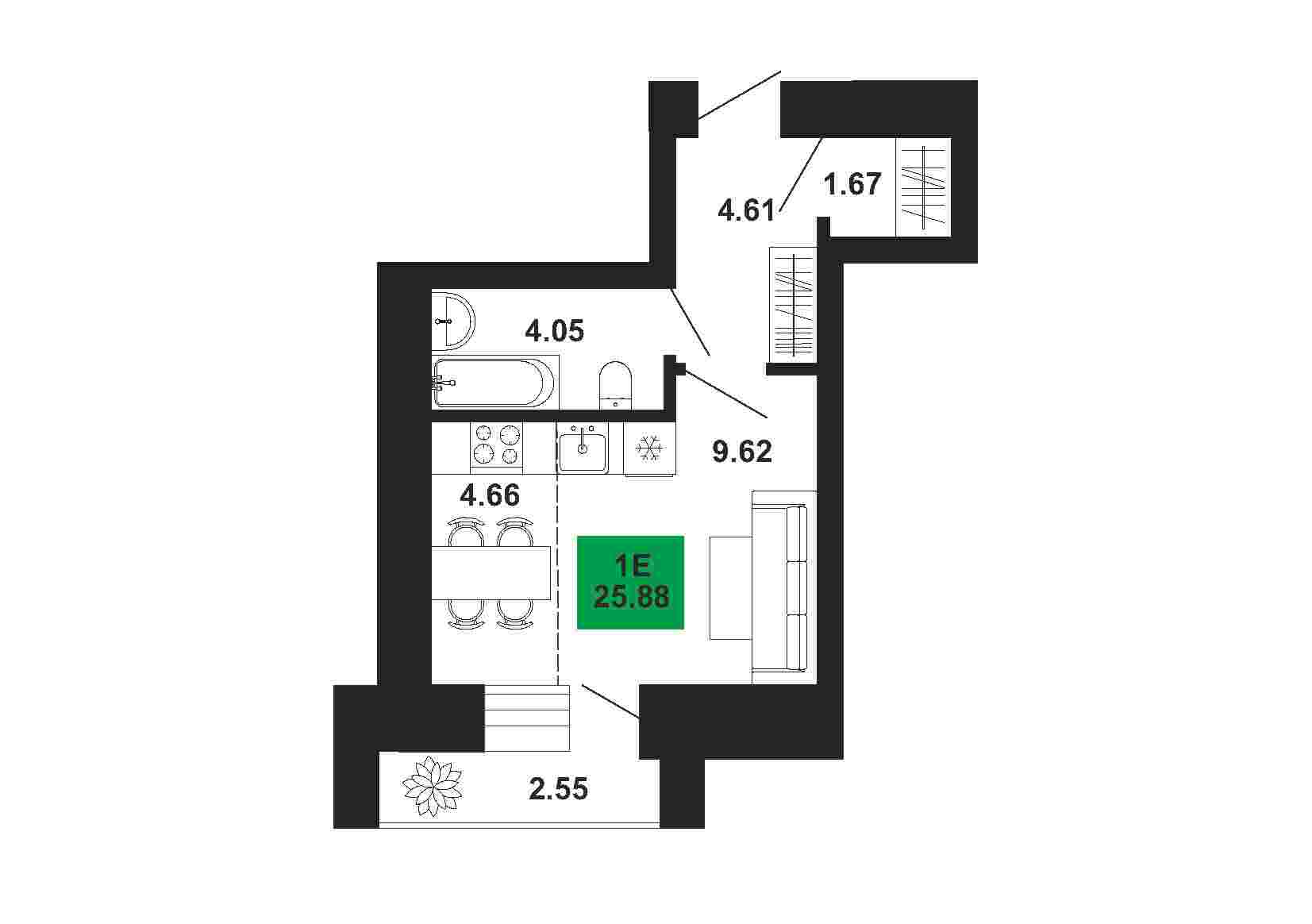 1к , 25.83 м2