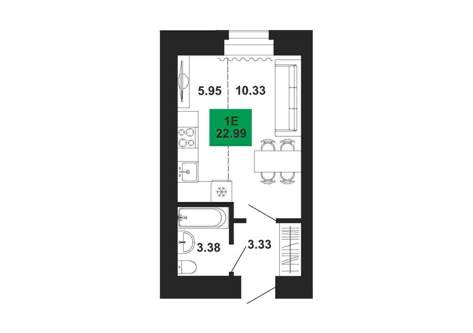 1к , 22.99 м2