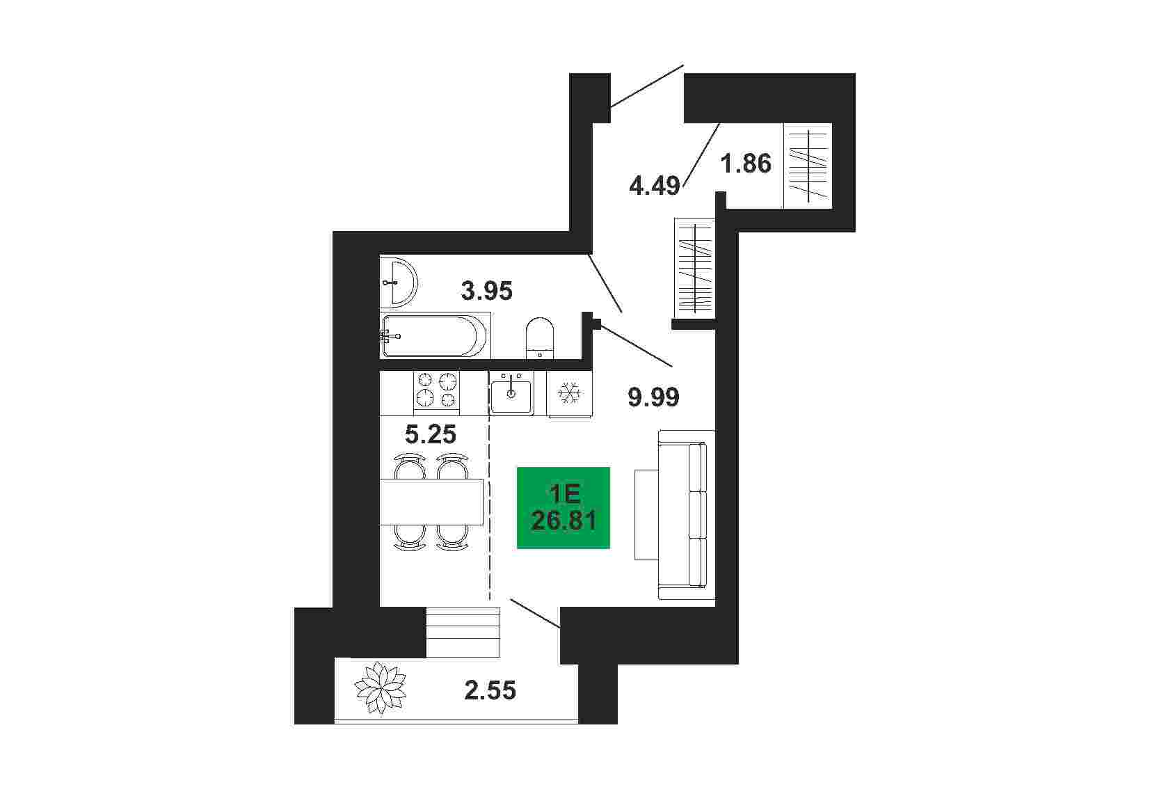 1к , 26.81 м2