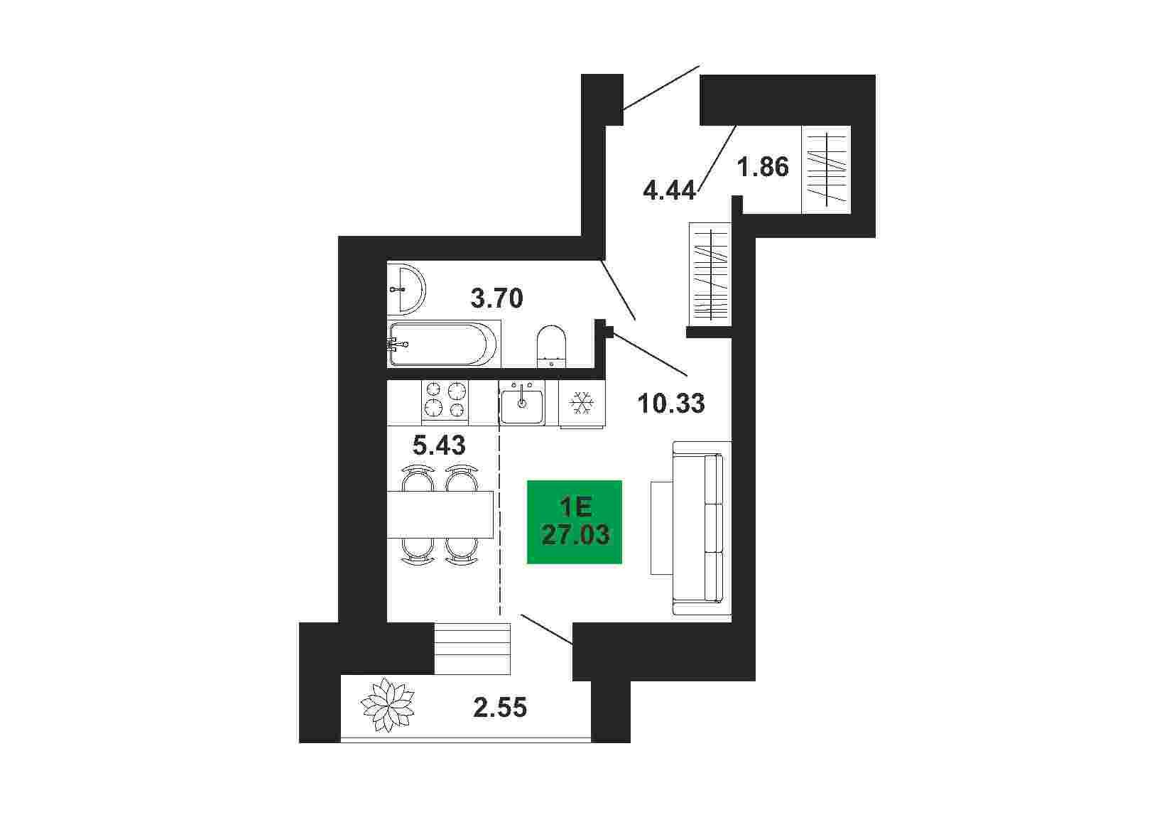 1к , 27.03 м2